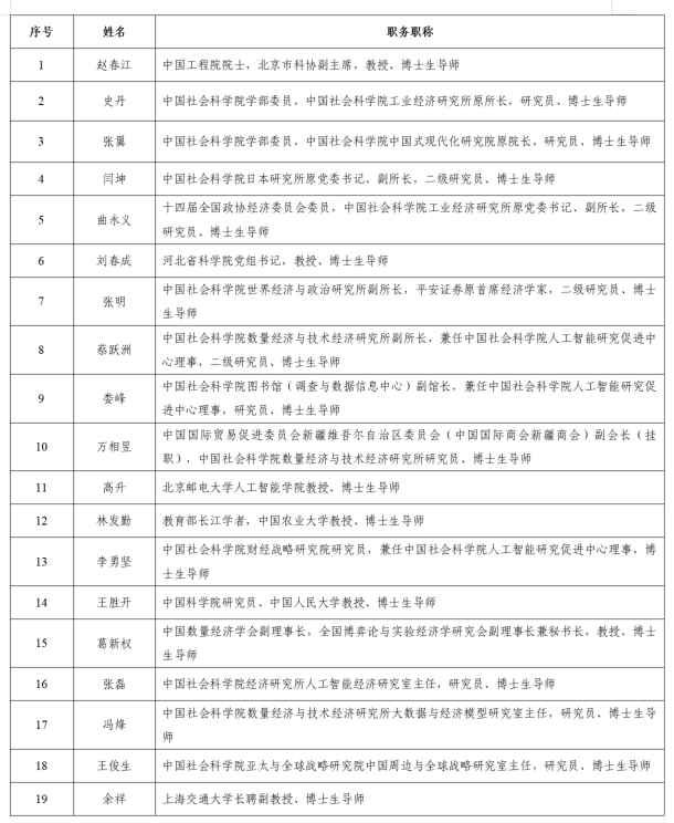 本项目将依托中国社会科学院人工智能研究促进中心,聘请人工智能、经济学、管理学领域享有极高学术声誉和社会影响力的两院院士、学部委员等顶尖学者、博士生导师参与授课;此外,还将聘请一批学术功底深厚、授课经验丰富的其他所系、部委机关和相关行业的知名教授、学者型领导和行业研究专家参与授课,组建一支师德高尚、业务精湛、结构合理、充满活力的高水平师资队伍。